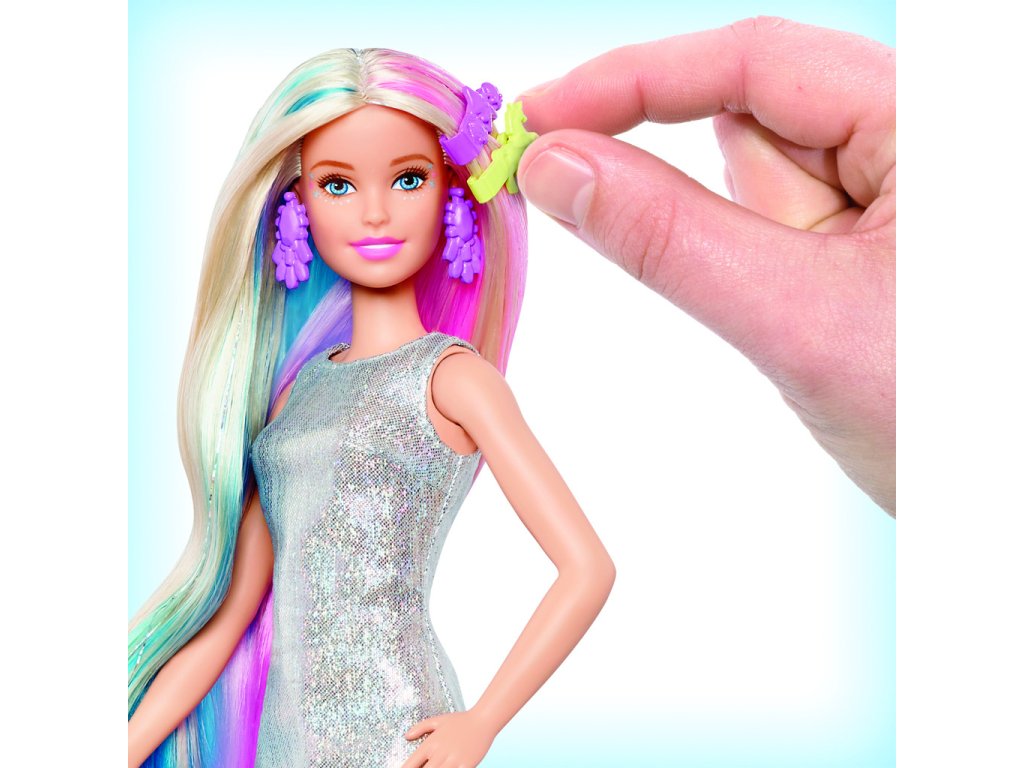 Panence Barbie® jednoduše oblečete tričko s motivem mořské panny nebo jednorožce a okamžitě se změní její fantastický vzhled. Díky čelence s barevnými příčesky její celkový vzhled navíc ještě dokonale doladíte podle své fantazie a proměna bude jistě perfektní, a navíc ji můžete stále měnit.