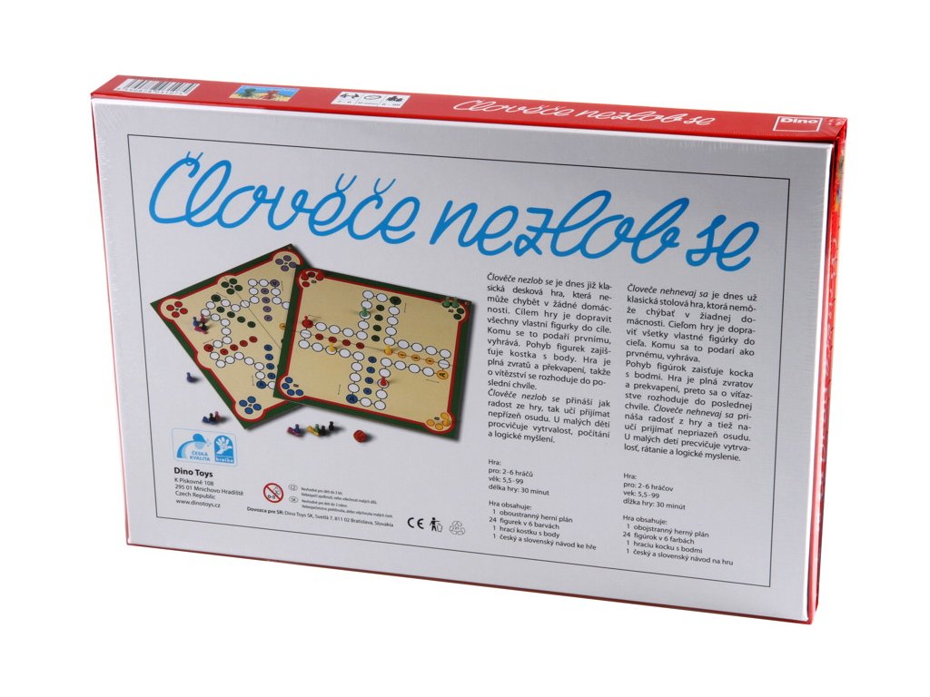 Člověče nezlob se je hra, kterou zná už několik generací, avšak stále si u ní všichni dobře pobaví. Úkolem každého hráče je projít se svými figurkami po směru šipky na herním plánu celou cestu až na cílová pole, tj. na 4 stejnobarevná pole ve středu herního plánu. Rychlost pohybu určuje počet hozených ok na hrací kostce. Ten, kdo se dostane jako první se všemi figurkami do „domečku“, vyhrává!