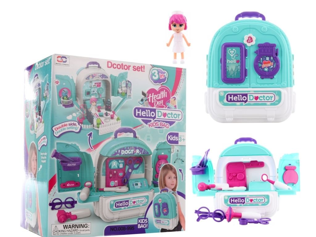 Krásná velká doktorská sada, která nabízí hned 3 způsoby použití! Perfektní hračka pro malé doktorky a doktory, kteří si rádi hrají na lékaře a pečují o své pacienty.