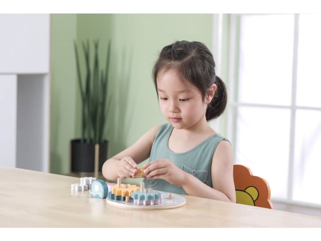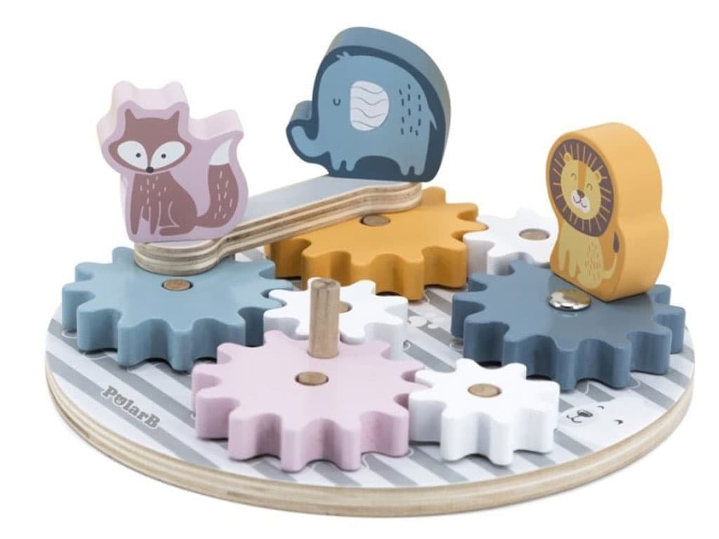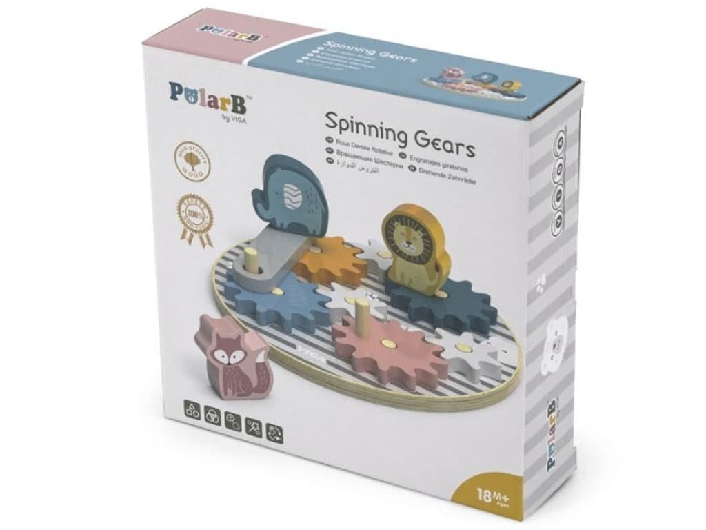 Děti mohou otáčením koleček pozorovat, jak se všechna ozubená kolečka vzájemně propojují a pohybují. Tento proces podporuje jejich schopnost chápat příčinu a následek, rozvíjí jemnou motoriku a koordinaci rukou a očí. Hračka je navržena tak, aby děti bavila a zároveň jim poskytovala vzdělávací přínos.
