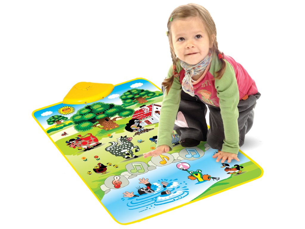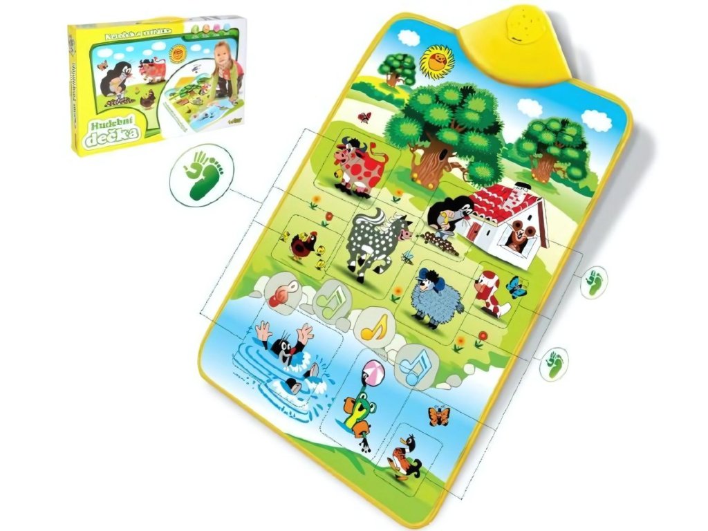 Hudební podložka s oblíbeným Krtečkem přináší do dětského pokoje zvuky zvířat a veselé melodie, které probouzí zvědavost a učí děti poznávat svět kolem sebe. Dítě se dotkne obrázku se zvířátkem a okamžitě uslyší, jak kravička bučí, koník řehtá, žabička kváká nebo ovečka bečí. Takhle si přirozeně zapamatuje hlasy zvířat a naučí se je spojovat s jejich podobou. A když má chuť na pohyb? Pustí si melodie a může si zatančit, zazpívat nebo jen poslouchat.