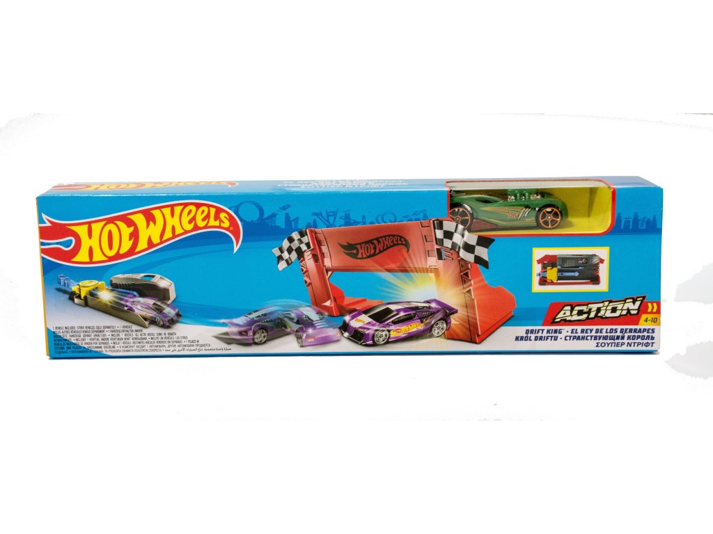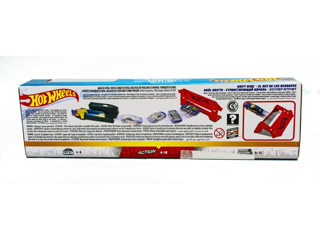 Další rozšíření tvé jistě parádní dráhy Hot Wheels ze série Velký skok, tentokrát Král driftů. Pomocí vystřelovače odpal své auto a snaž se doklouzat až k červené cílové bráně. Čím dál si cílovou bránu postavíš, tím větší výzva to pro tebe bude.