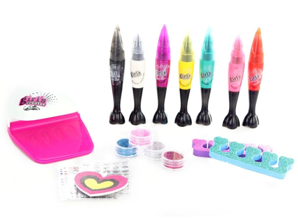 Oboustranné laky a zdobicí nástroje jsou navrženy tak, aby byly snadno ovladatelné – děti zvládnou manikúru samy bez komplikací.