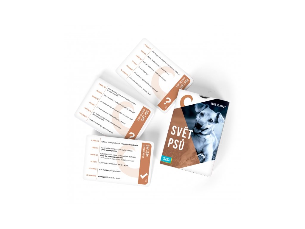 Cestovní balení kvízové hry pro procvičení znalostí o psech. Díky malé velikosti balení lze hru vzít prakticky kamkoli.