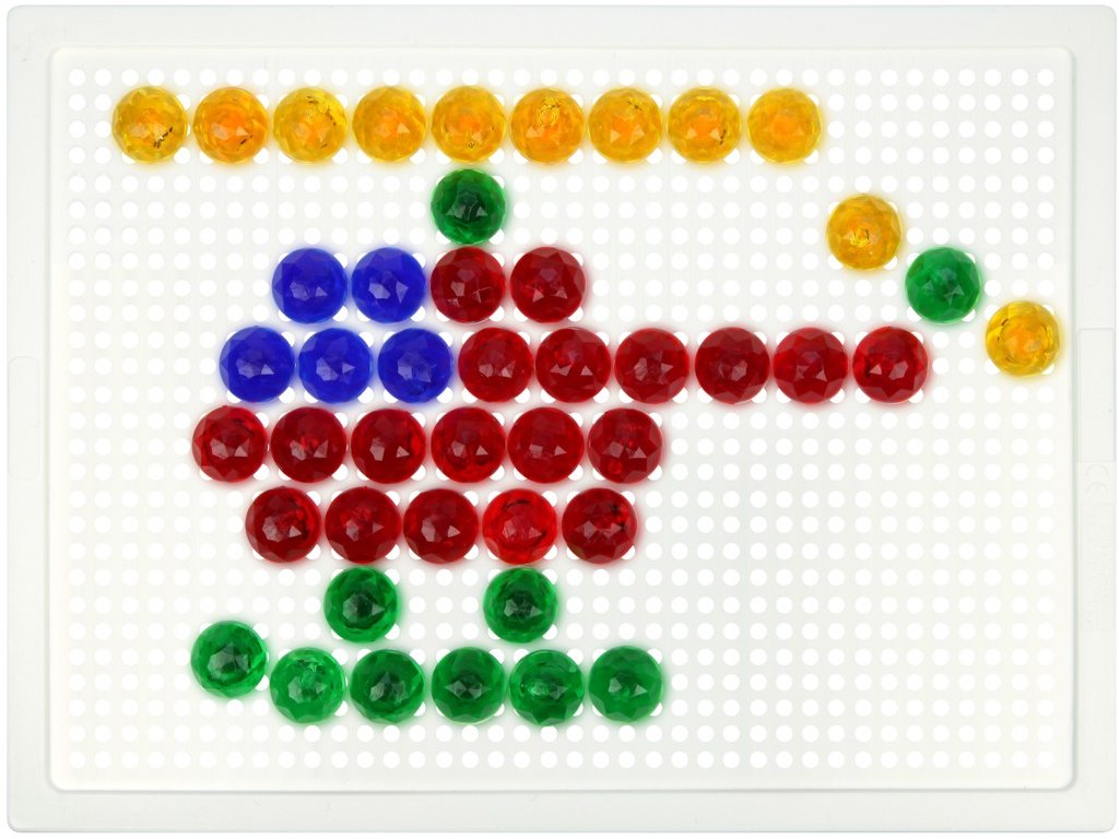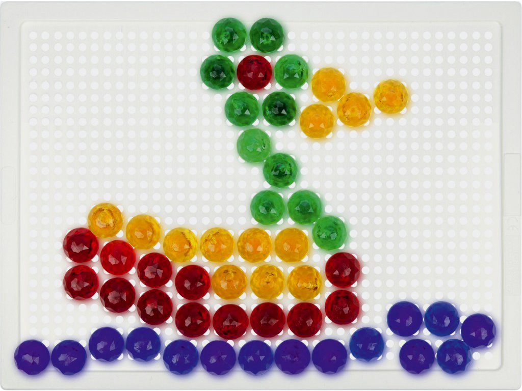 Skládej a vytvářej svůj vlastní svět plný krásných obrázků do mřížkované podložky. Poskládej si vrtulník nebo si vytvoř kytičku. Je to jen na tobě. Tvoř znovu a znovu díky 80 kusům plastových hlaviček o průměru 1,5 cm, které na desce umístíš přesně na místo, kam se ti bude hodit!