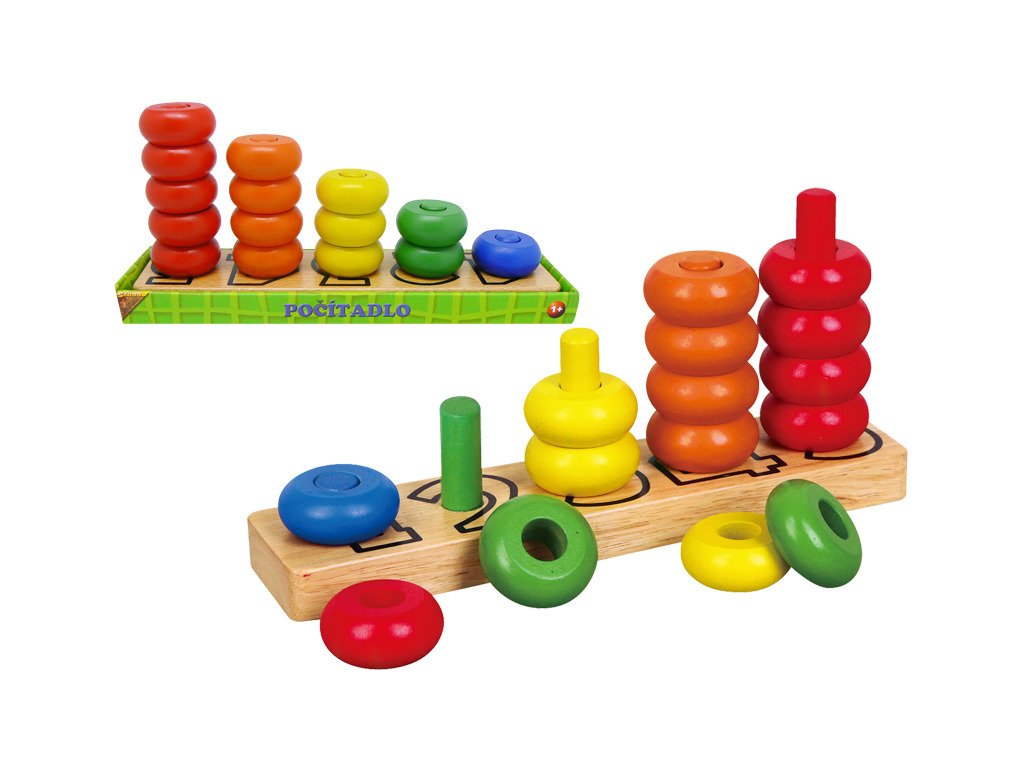 Dřevěná kolečka se skládají na sebe podle uvedených čísel. Děti se hravě naučí čísla pomocí barev.Hra rozvíjí dětskou logiku a jemnou motoriku.