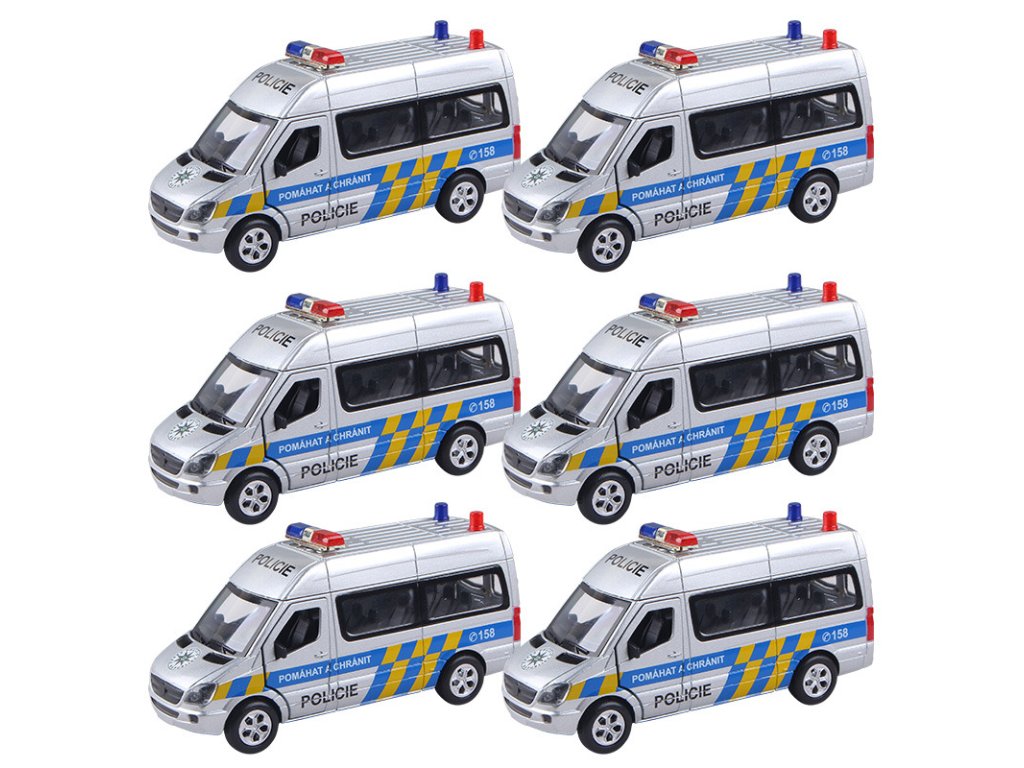 Krásně propracovaný model auta Mercedes Benz v barvách české policie na zpětné natažení s otevíratelnými dveřmi a zvukovými i světelnými efetky.