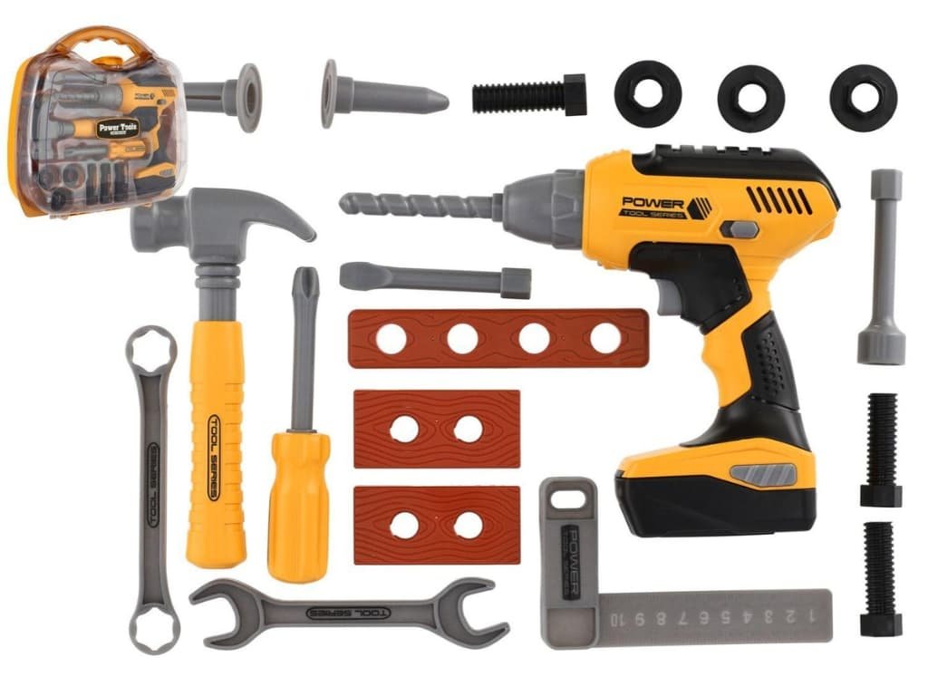 Sada nářadí s aku vrtačkou je skvělým dárkem pro malé kutily od 3 let. Tato realistická hračka umožňuje dětem napodobovat práci dospělých a rozvíjet svou představivost. Hlavní součástí sady je 16x17cm velká plastová vrtačka, která funguje na baterie a vydává zvuky pro autentičtější zážitek. Vrtačka je napájena 3 AAA bateriemi (nejsou součástí balení) a poskytuje dětem bezpečný způsob, jak se seznámit s nářadím.