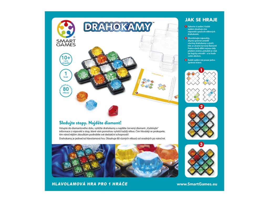 - Obsah balení: Herní deska, 80 hlavolamů, drahokamy, pravidla hry