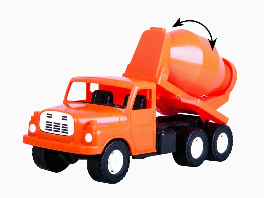 Realistický design a funkce míchačky učí dítě, jak fungují stavební stroje a práce na staveništi, což probouzí zájem o techniku a řemesla.