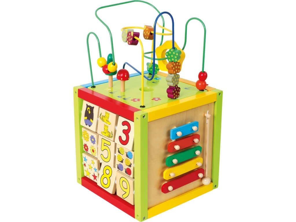 Každá strana kostky procvičuje jemnou motoriku a koordinaci pohybů. Dítě se učí ovládat své ruce, být přesnější, jistější.