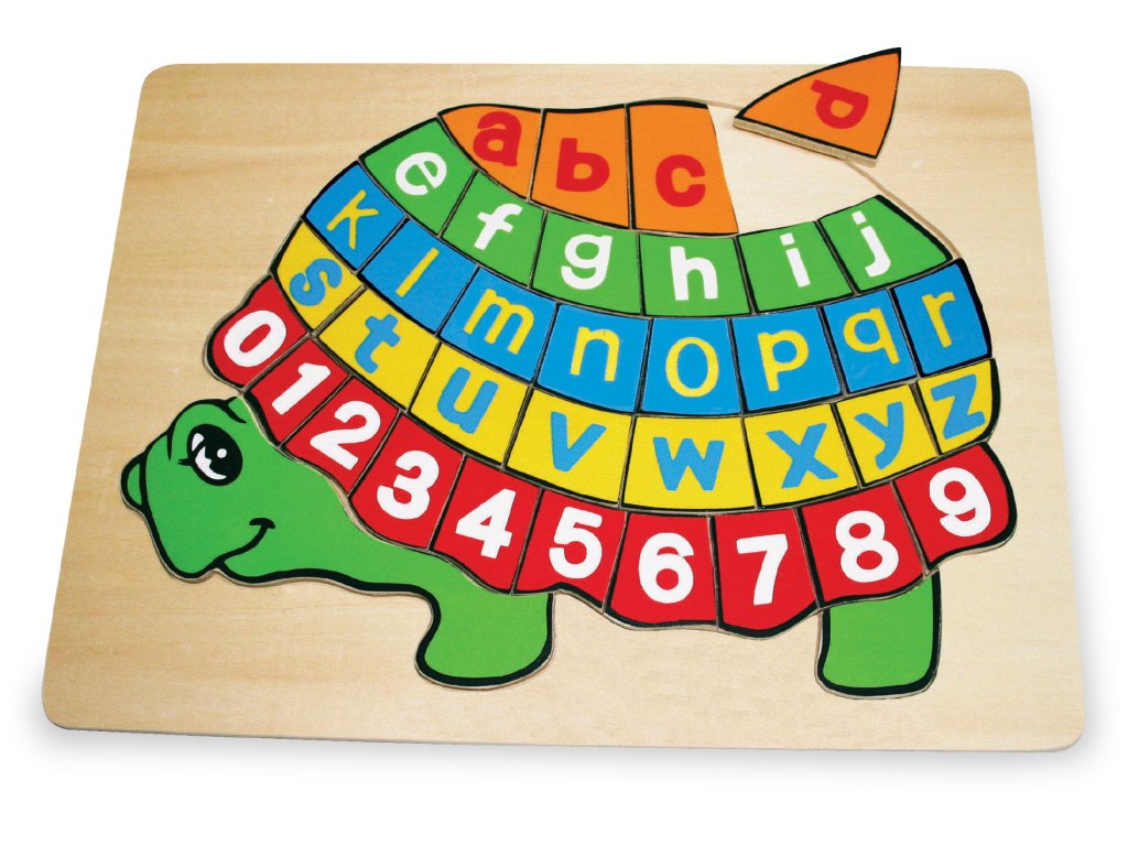 Díky vkládacímu puzzle Želva si děti nejen procvičí trpělivost a představivost, ale ještě k tomu se hravě naučí abecedu a čísla.