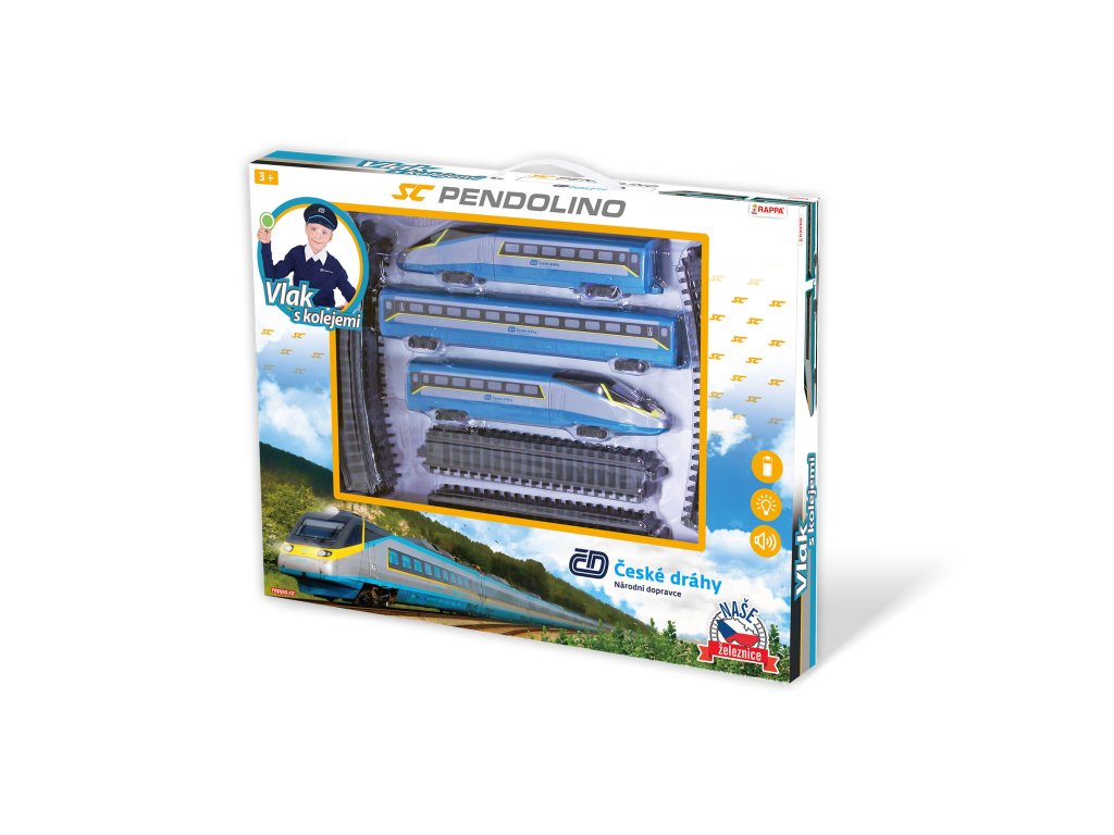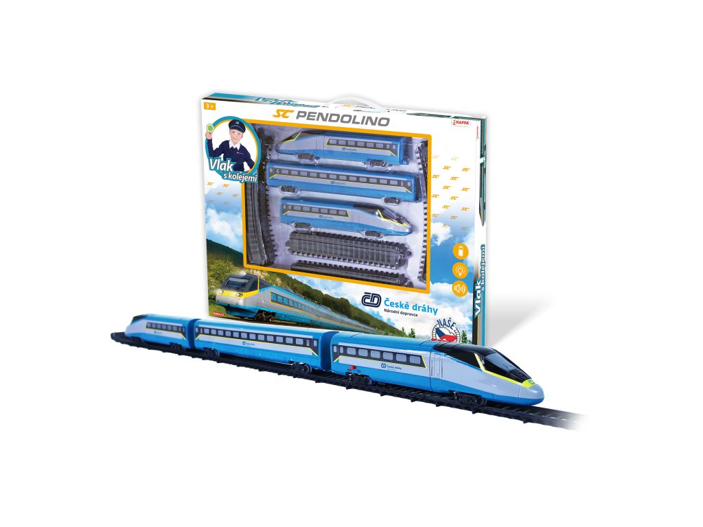 Vlak/SC Pendolino České dráhy s kolejemi plast na baterie se zvukem se světlem