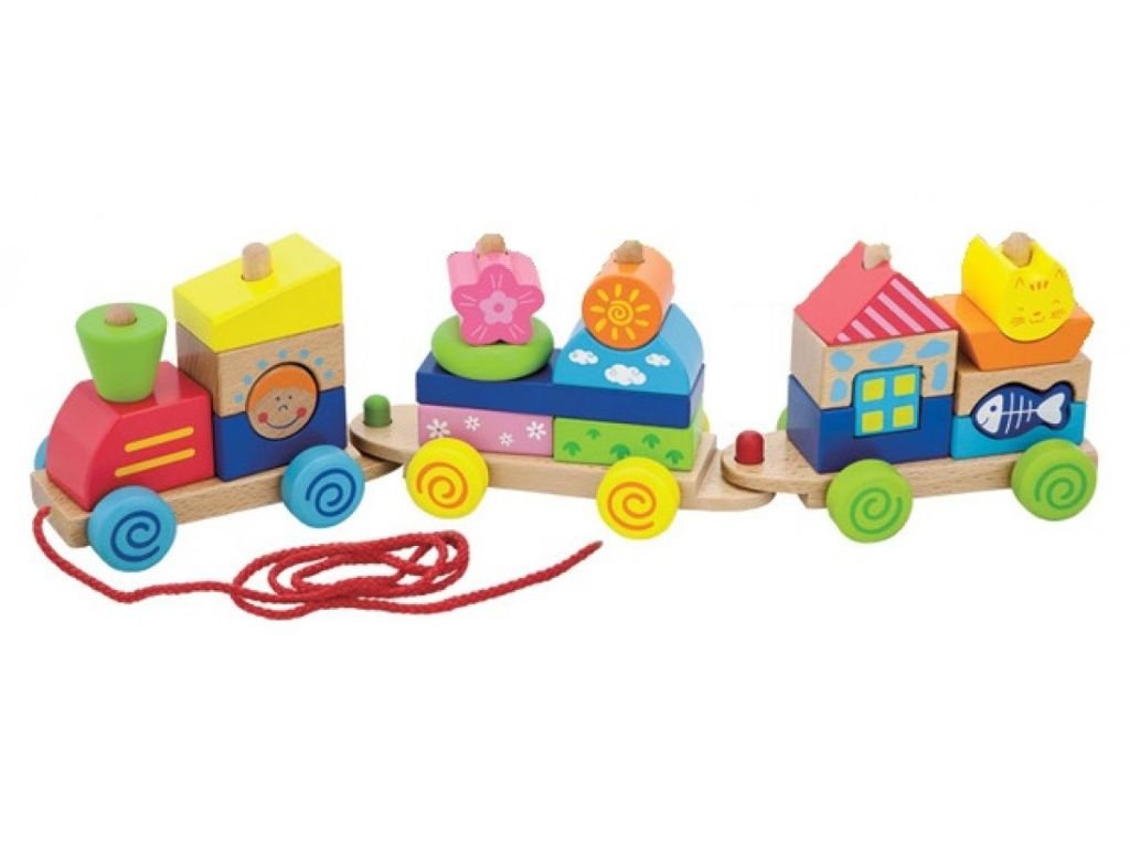 Od 18 měsíců děti aktivně zkoumají svět kolem sebe – chtějí se pohybovat, dotýkat, skládat, tahat. Tento vláček jim dává přesně to, co hledají. Skládání jednotlivých částí vláčku podporuje jemnou motoriku, koordinaci a logické myšlení. Dítě musí uchopit tvar, správně ho umístit na vagónek, zkontrolovat, jestli drží. Každý úspěch posiluje sebevědomí, každý pokus rozvíjí dovednosti. Možnost vyndávání a skládání různých tvarů a barev podporuje představivost a kreativitu dítěte. Není jen jeden správný způsob, jak vláček naskládat – každá kombinace je správná, každá stavba je jedinečná. A provázek připevněný k přední části přidává další rozměr – dítě nejen tvoří, ale také aktivně pohybuje svou výtvorem. Vyrobeno z odolného a bezpečného dřeva, což zajišťuje dlouhou životnost i při intenzivním používání.