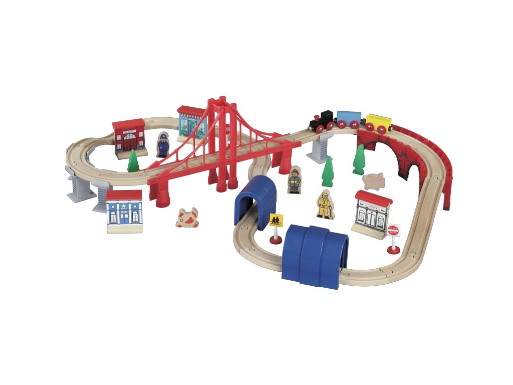 Tahle stavebnice nabízí začínajícím stavitelům železnice postavit kompletní malé město, s několika důležitými budovami, tunely a mosty. Figurky symbolizující život na malém městě. Vysoký visutý most je opravdovou dominantou tohoto města, ve kterém se toho dá spoustu zažít. Rozměr sestavené stavebnice: 115x80cm Vláčkodráhy a doplňky Maxim lze kombinovat se všemi dalšími dřevěnými vláčkodráhami na trhu. Vhodné pro děti od 3 let, obsahuje malé části.
