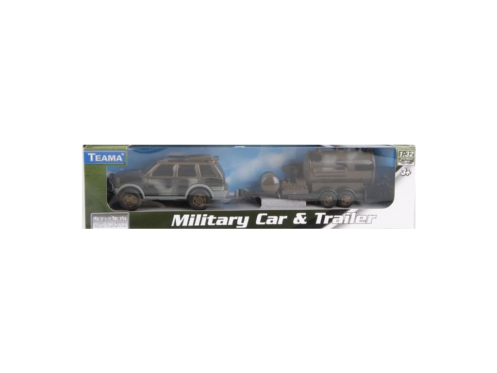 Maskované terénní vojenské auto s přívěsem v měřítku 1:32 je vhodné pro děti od 3 let. Přívěs je vybaven cisternou.